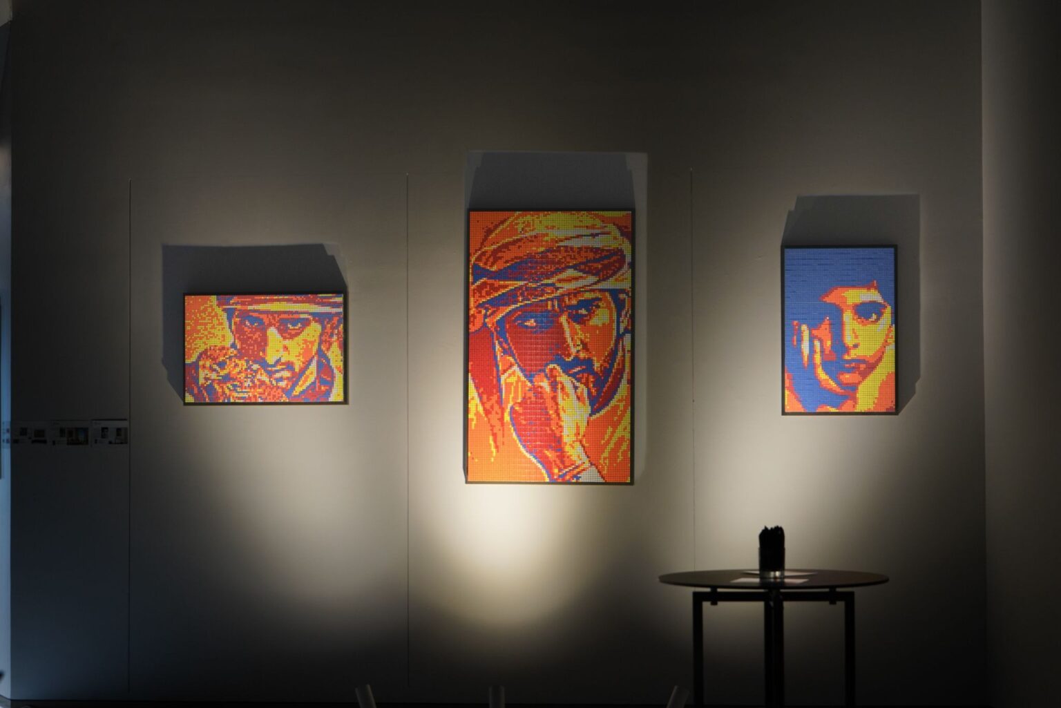 The exhibition features more than 30 large-scale mosaic artworks built from over 20,000 solved 3x3x3 Rubik’s Cubes. Each cube measures 28mm and contributes to compositions that explore identity, continuity, and creativity through a structured, methodical approach to image-making.